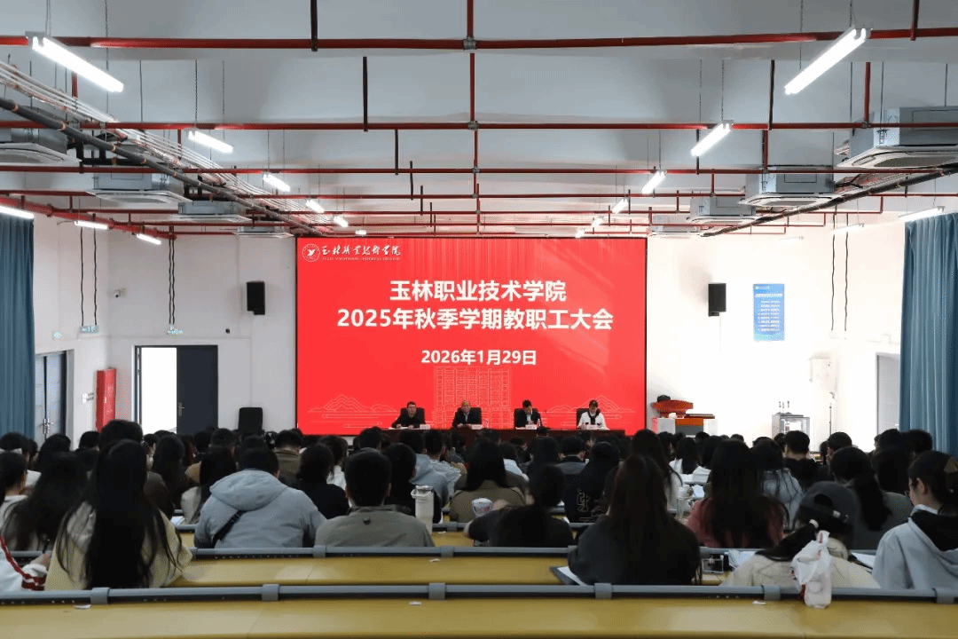 1月29日,玉林职业技术学院召开2025年秋季学期教职工大会。此次会议旨在全面总结过往经验,明确2026年发展方向,凝聚全体教职工的智慧与力量,共同推动学院事业迈向新的台阶。学院党委书记黄...
