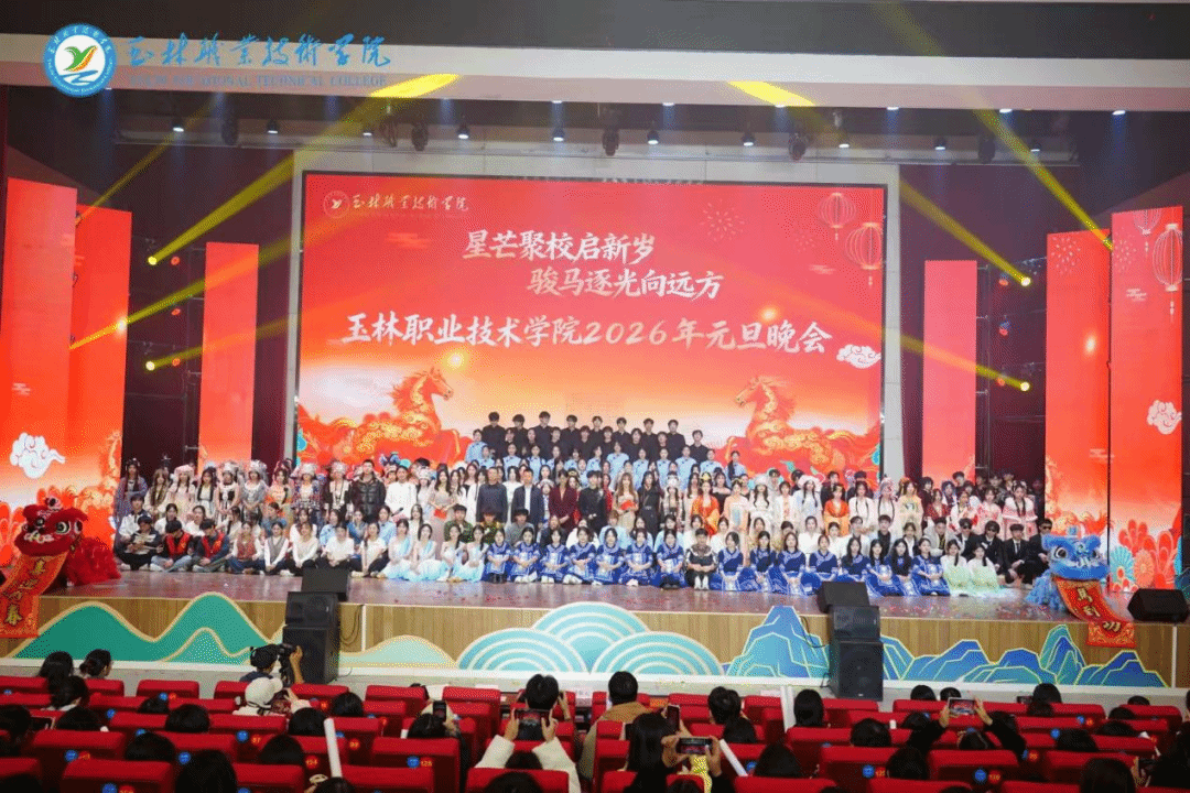 近日,玉林职业技术学院2026年校园元旦晚会圆满落幕。本次晚会以“星芒聚校启新岁,骏马逐光向远方”为主题,融合了歌舞、小品、朗诵等多种艺术形式,为全校师生带来了一场视听与情感交织的...