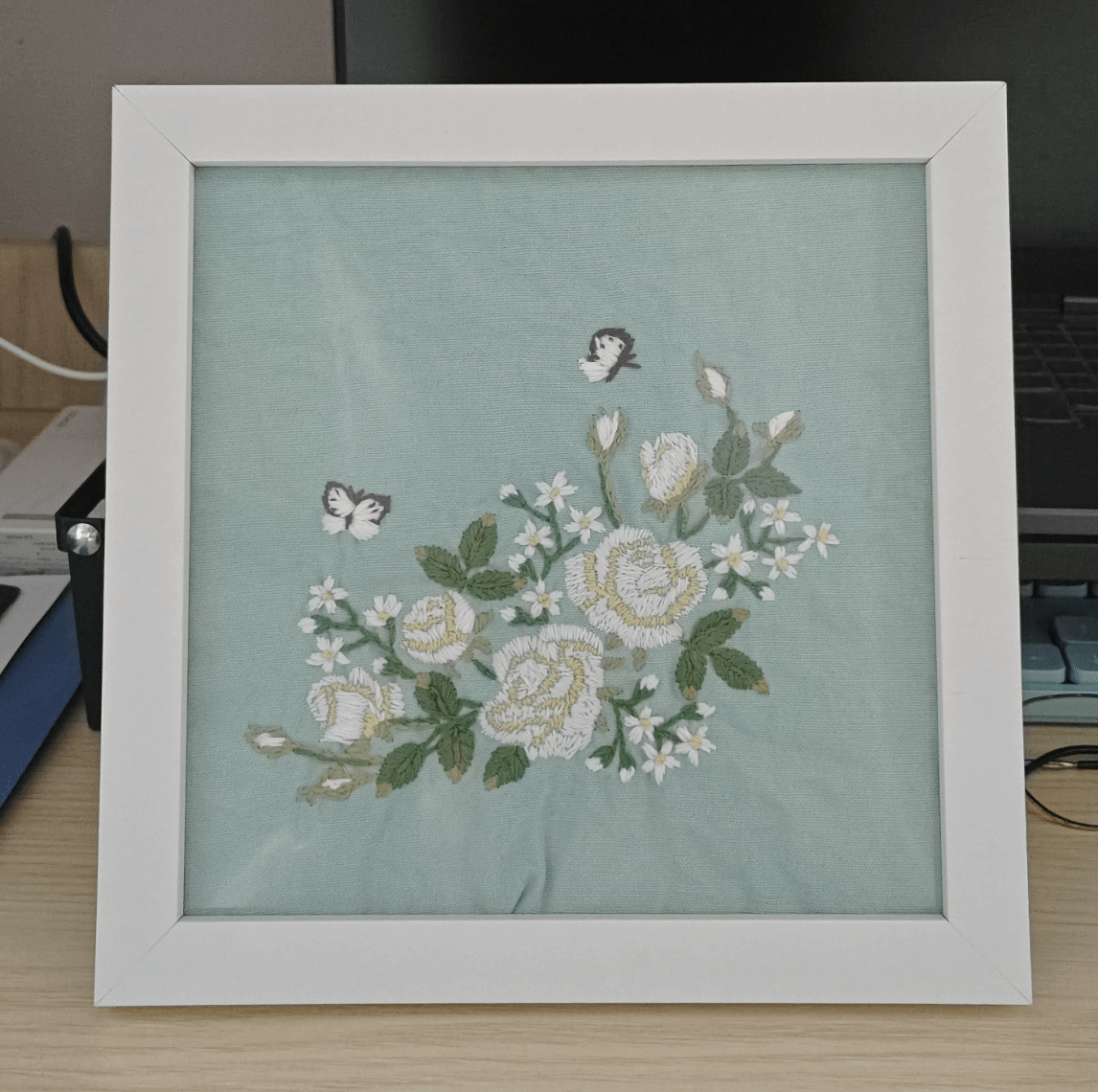 卢淑芳——刺绣作品《青缣蝶语•白玫春枝》