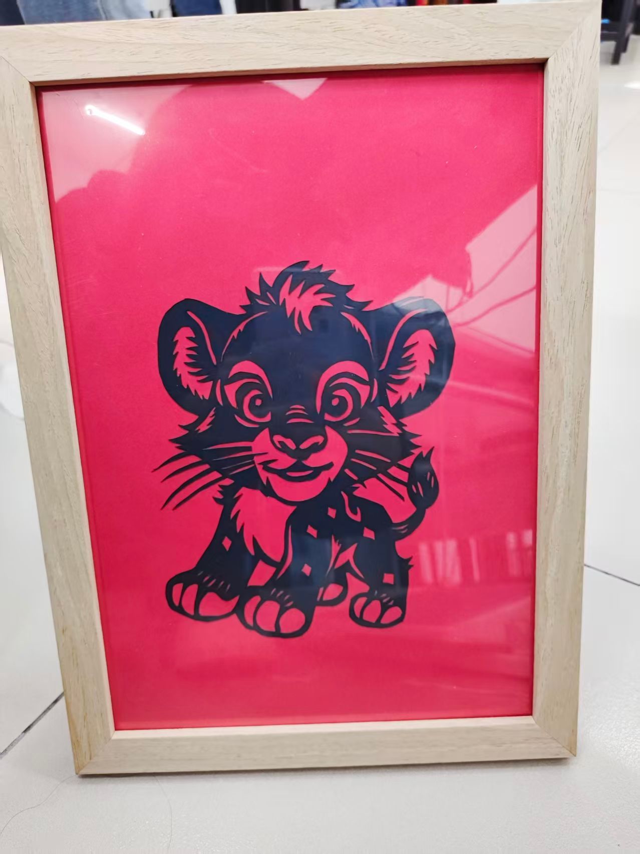 周英娇——剪纸作品《丹红映墨. 狮儿俏》