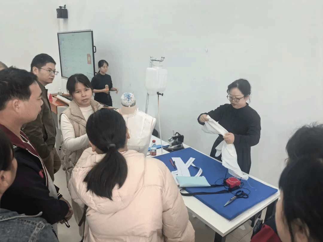 本次培训班分批次开展:12月1日率先开展服装与烹饪工种培训,12月2日开展汽车焊装工种培训。培训分别在郁香苑多功能实训室、求新楼与求实楼实训室、广吉服装厂等校内外实践基地展开。各工种课程均由专业教师主持授课,其中服装工种由国家级技能大师吴丁丁负责理论与实操教学,烹饪工种由自治区技能大师梁冠强主讲并进行示范操作,汽车焊装工种邀请世赛大师罗宗港分享世赛经验并指导实操。