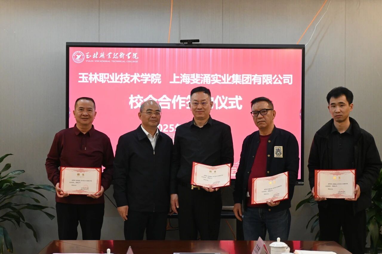 为深化产教融合、赋能人才培养,2025 年 12 月 11 日上午 9:00,玉林职业技术学院与上海斐涌实业集团有限公司校企合作签约仪式在学院综合楼 7 楼会议室隆重举行。双方以此次合作为契机,搭建校企协同育人新平台,共同开启优势互补、互利共赢的发展新篇章。