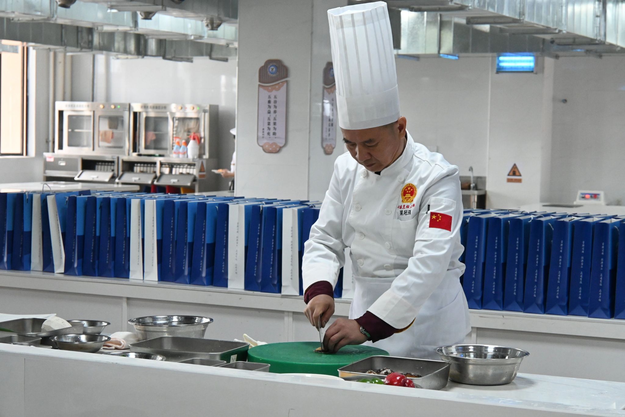 揭牌仪式结束后,精彩的大师技能表演在郁香苑 3 楼 301 多功能实训室上演。中国烹饪大师梁冠强现场展示精湛厨艺,刀工技艺娴熟精准,烹饪手法行云流水,一道道色香味俱全的菜品惊艳亮相,赢得现场师生的阵阵掌声。表演结束后,师生代表与企业嘉宾围绕专业学习、行业发展、职业规划等话题展开深入交流互动,企业嘉宾耐心解答师生疑问,为学院人才培养和学生成长提供宝贵建议。