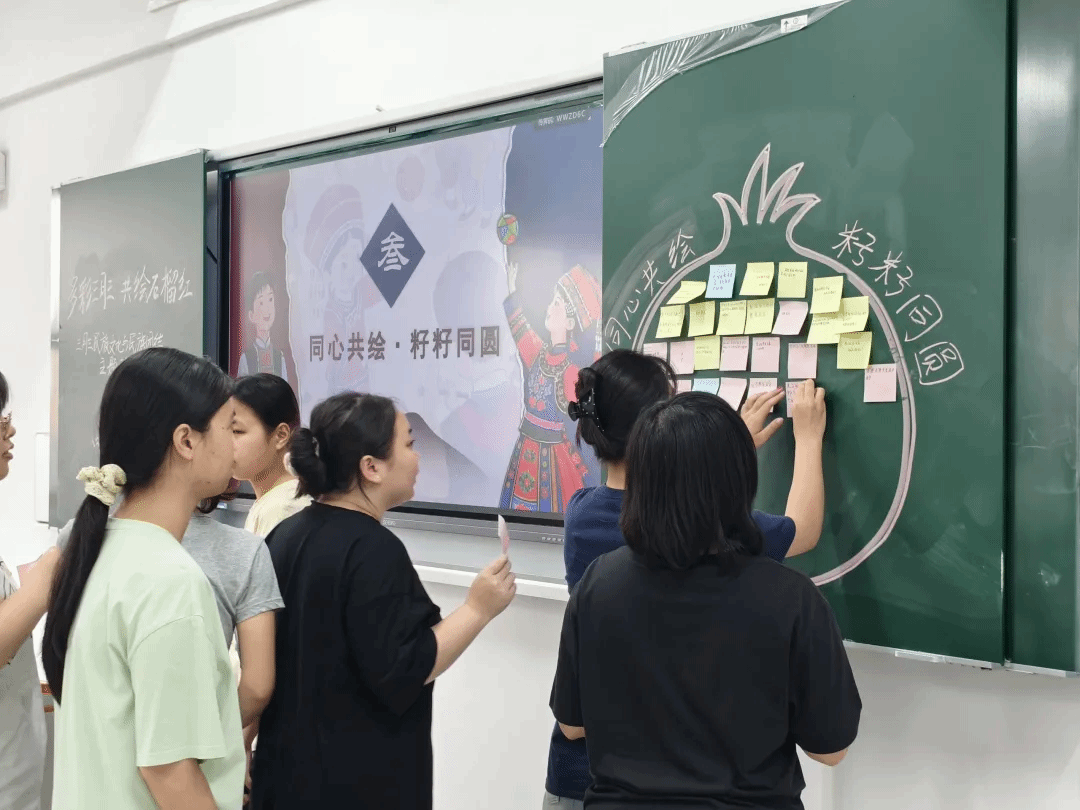 图3 同学们用便利贴作石榴籽,同心共筑团结梦