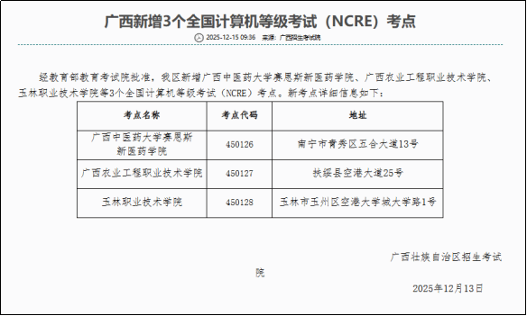 玉林职业技术学院成功获批全国计算机等级考试(NCRE)考点