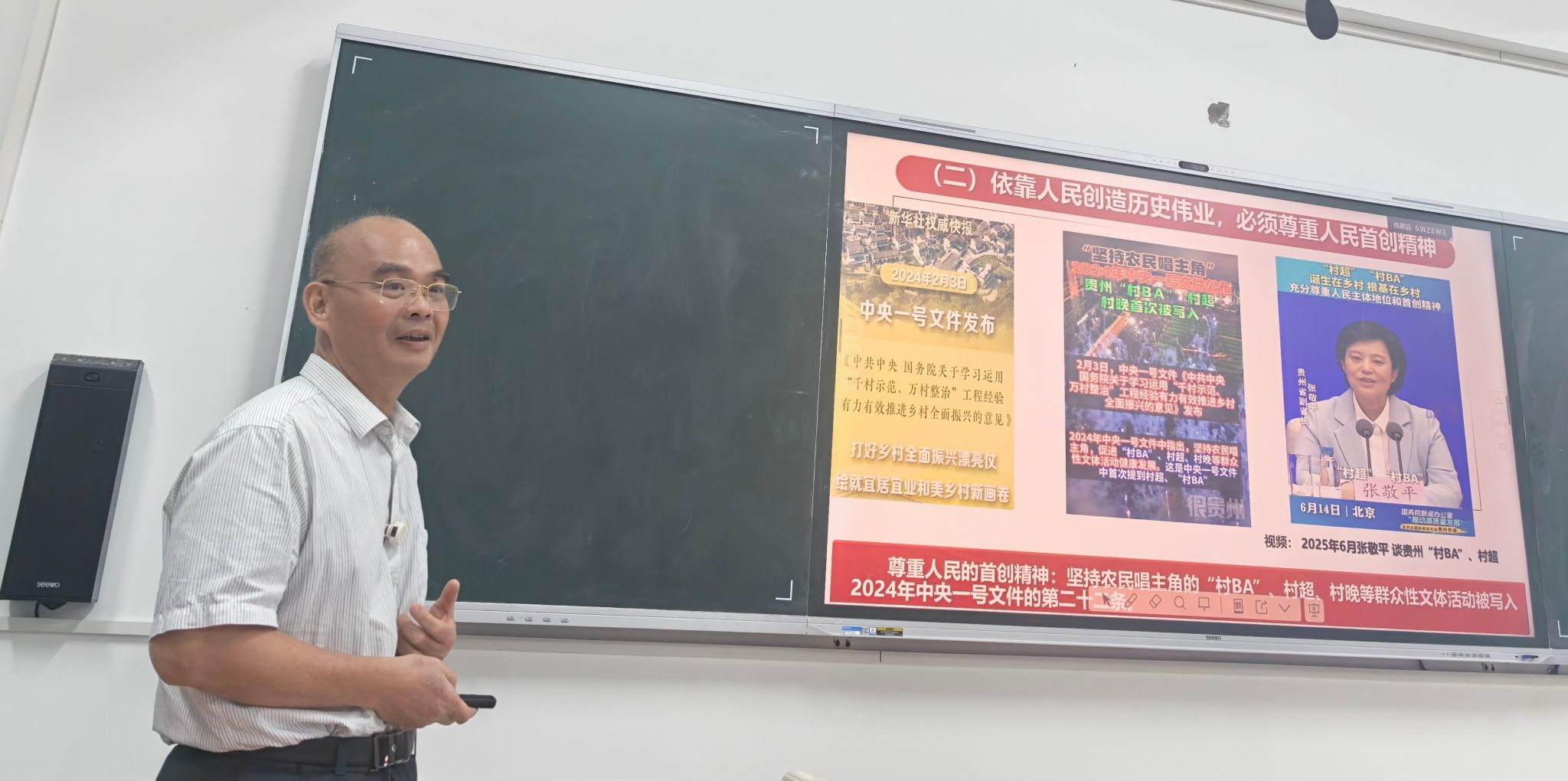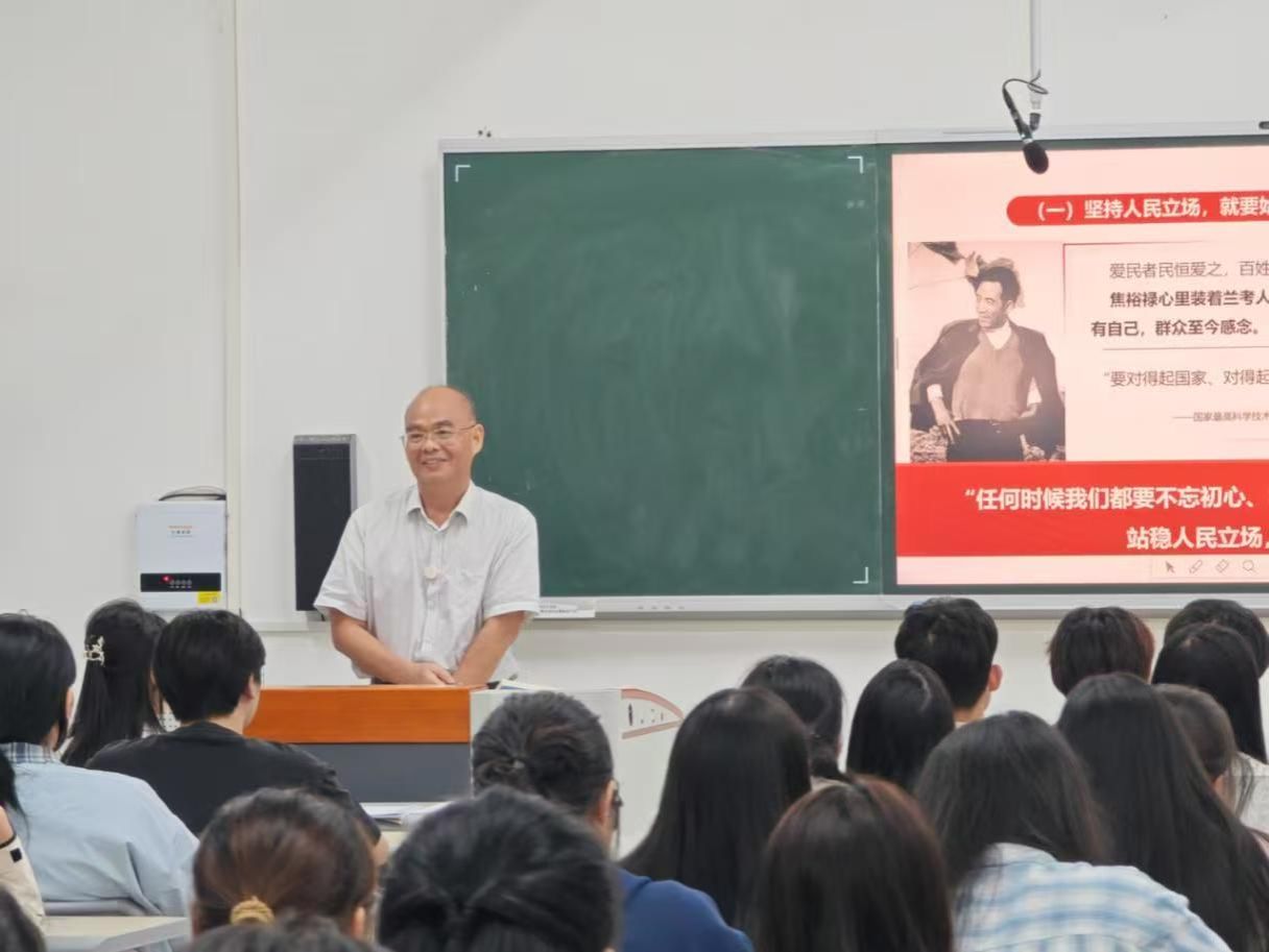 在讲授“江山就是人民,人民就是江山”时,黄书记以生动的历史事例,从中国共产党百年奋斗历程中人民的磅礴力量讲起,引导学生深刻领悟中国共产党人的初心和使命——为中国人民谋幸福,为中华民族谋复兴,并强调这一初心使命始终是党坚持以人民为中心的生动体现和不懈追求。