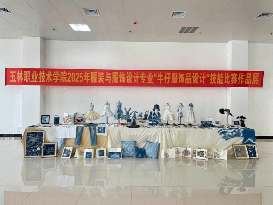 在职业教育活动周的创意展区中,错落陈列着服装与服饰设计专业学生创作的手工刺绣、扎染、牛仔面料肌理改造、饰品制作、成衣服装等100余件作品,每件作品都凝聚着玉职青年学子的巧思。
