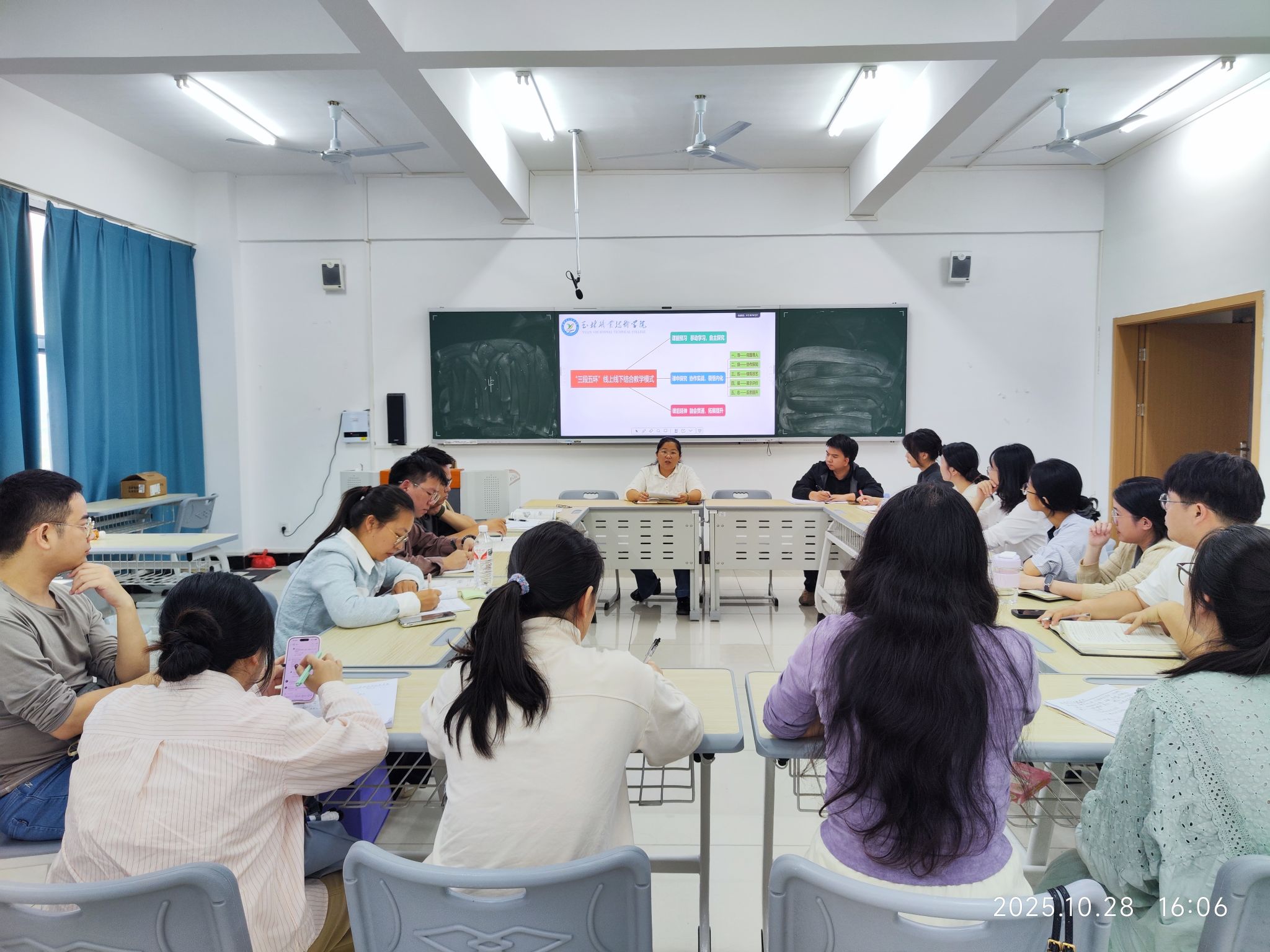 会议最后,邱健华老师进行总结分享。她以“三段五环”线上线下混合式教学模式为例,介绍了该模式在课堂中的实际成效,并对教师们提出的共性问题作了细致解答。邱老师指出,提升课堂教学实效性,关键在于把握学生特征与学习规律,做到“四个坚持”:一是坚持学情分析,因材施教,精准把握学生需求;二是坚持创新教学方法,加强师生互动,激发学习积极性;三是坚持强化课堂管理,营造良好氛围,提升学习专注度;四是坚持突破教学重难点,优化课堂效率,实现知识的有效转化。