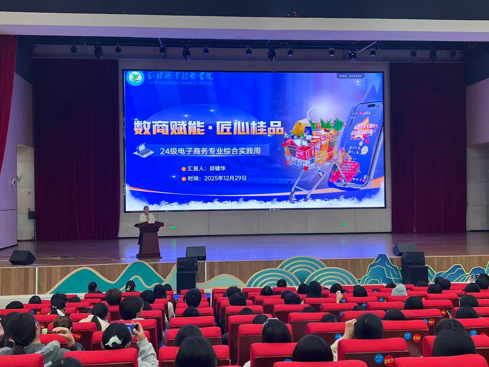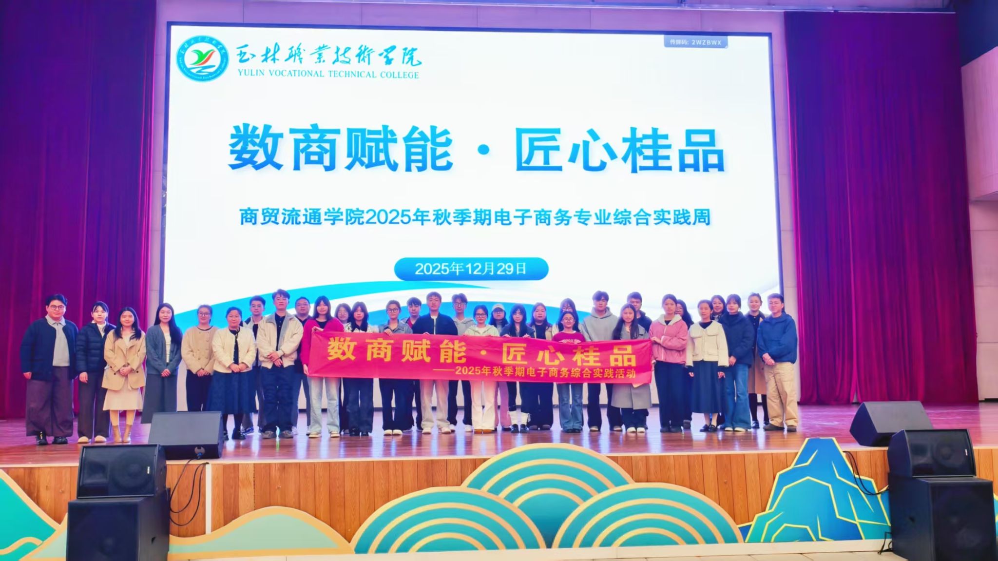 2025年12月29日下午,商贸流通学院在礼堂隆重举行“数商赋能·匠心桂品”综合实践周启动仪式。随着仪式的召开,为期两周24级电商专业全体师生共同参与,现场气氛庄重而热烈。