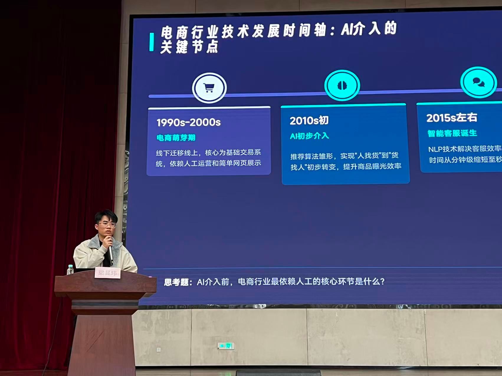 为加强产教融合,拓宽学生行业视野,学院特邀广西粮心天下有限公司电商总监梁显玮为全体师生带来了题为《AI+电商:重构行业生态,决胜就业未来》的专题讲座。梁总监结合自身丰富的企业实战经验,系统介绍了AI技术在电商领域的应用场景与发展趋势。通过生动的案例分析,他深入浅出地展示了AI如何赋能电商运营、优化用户体验,并对未来电商行业的就业形态变化进行了前瞻性分析。讲座内容充实、紧贴实际,不仅让学生们看到了科技的力量,更激发了大家对“AI+电商”融合发展的深入思考。