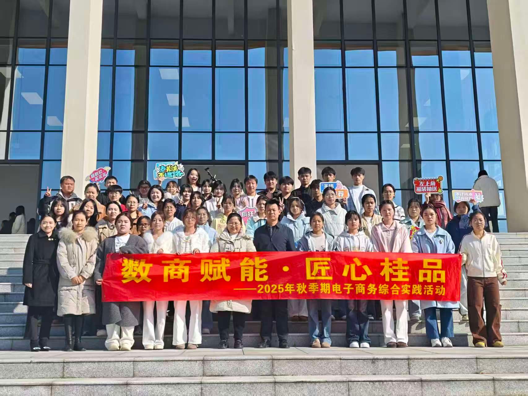 1月8日上午,2025年秋季期电子商务专业综合实践周核心活动——“数商赋能·匠心桂品”直播带货实战演练在学校礼堂大厅火热举行。学院院长唐彰元 亲临活动现场指导观摩,对实践教学改革成果与学生的专业表现给予了高度评价。