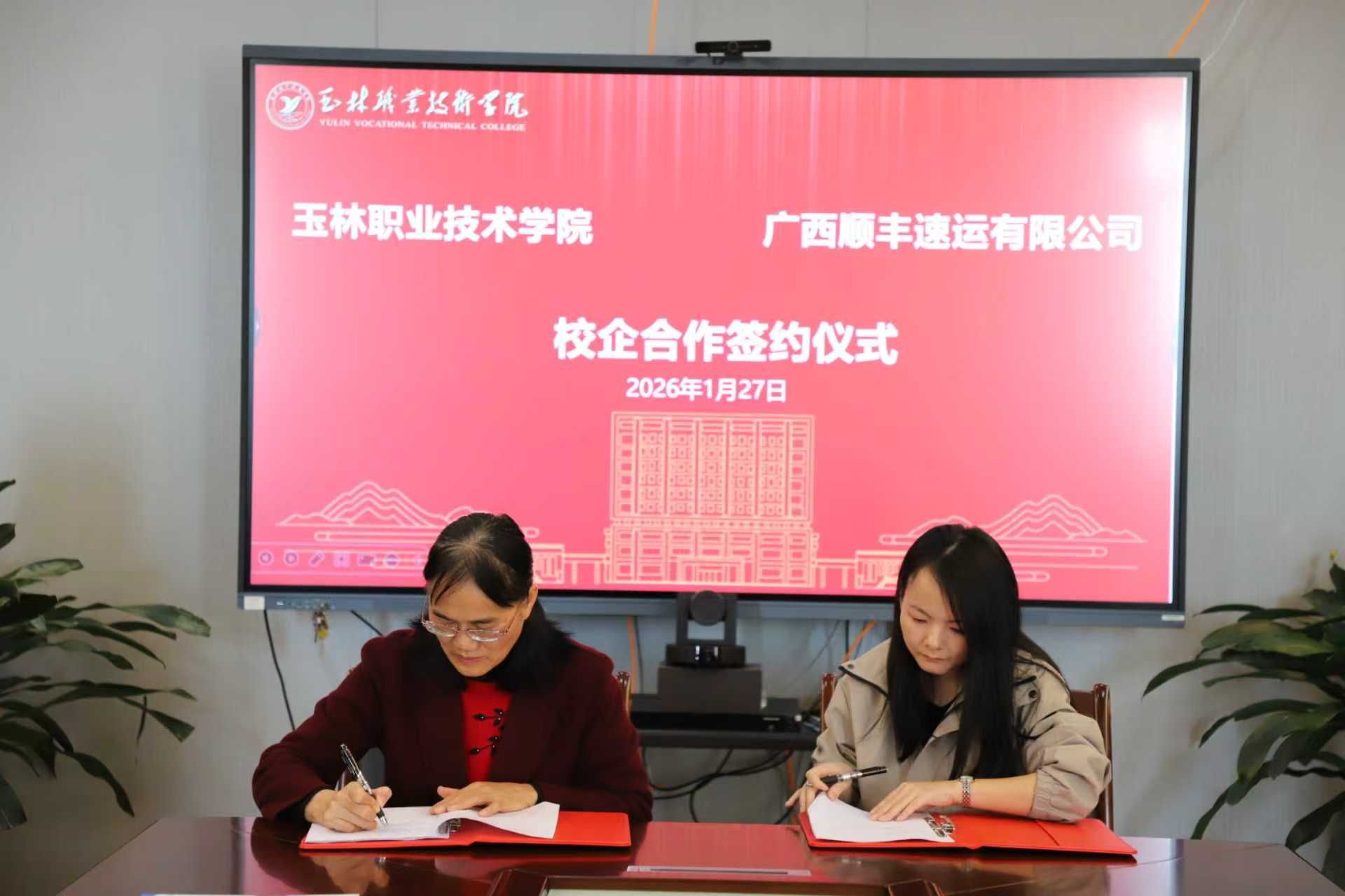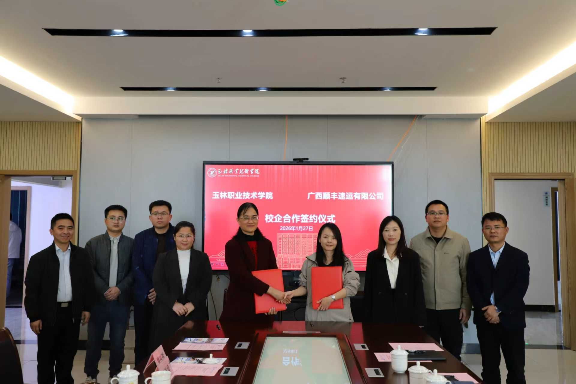 1月27日,玉林职业技术学院与广西顺丰速运有限公司校企合作协议签约仪式在学院综合楼隆重举行。广西顺丰速运有限公司校企合作负责人何梅香、人力资源负责人潘婷婷,玉林职业技术学院副院长刘焕兰,以及教务处、产教融合与社会服务中心等主要负责人出席仪式。