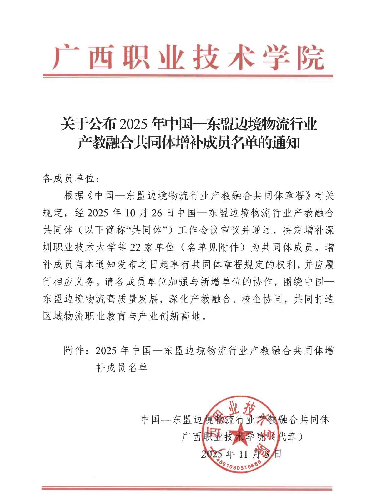当选副理事长单位,是学院在产教融合道路上取得的又一重要里程碑。未来,学院将以此为契机,更加坚定职业技术教育办学方向,深入探索“人工智能+”物流教育与产业融合的创新路径。将进一步加强与行业协会及成员单位的深度耦合,全力参与职业教育创新实践,着力培养更多掌握先进技术、扎根一线物流场景的数智化工匠,为服务区域物流产业高质量发展和推动中国—东盟边境物流智能化转型贡献玉林职教力量。