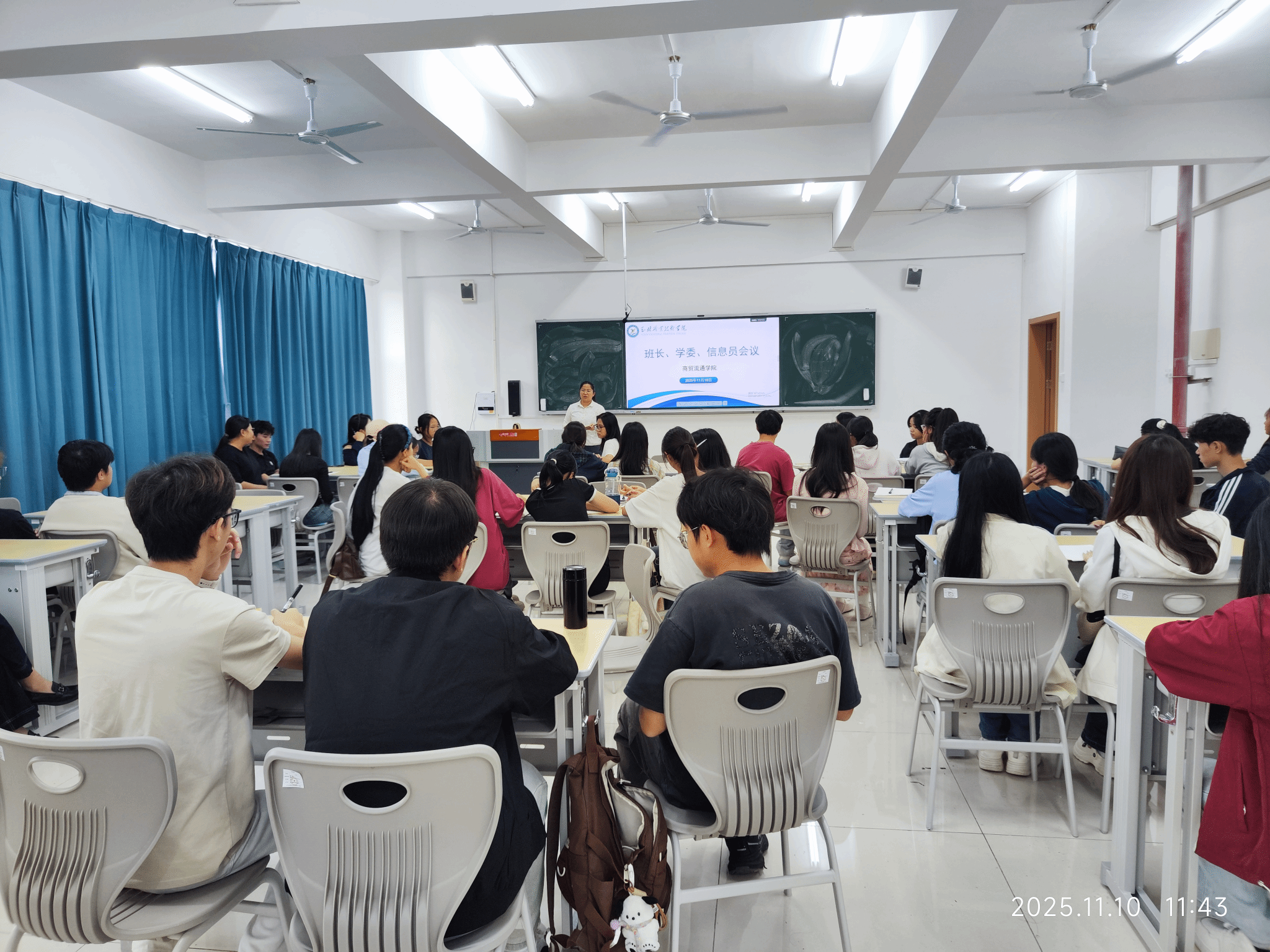 11月10日上午,商贸流通学院在学院会议室召开班级主要班干部工作会议,聚焦加强班级管理、优化学风建设。会议由专业负责人邱健华老师主持,学院各班班长、学习委员、信息委员等主要学生干部参加。