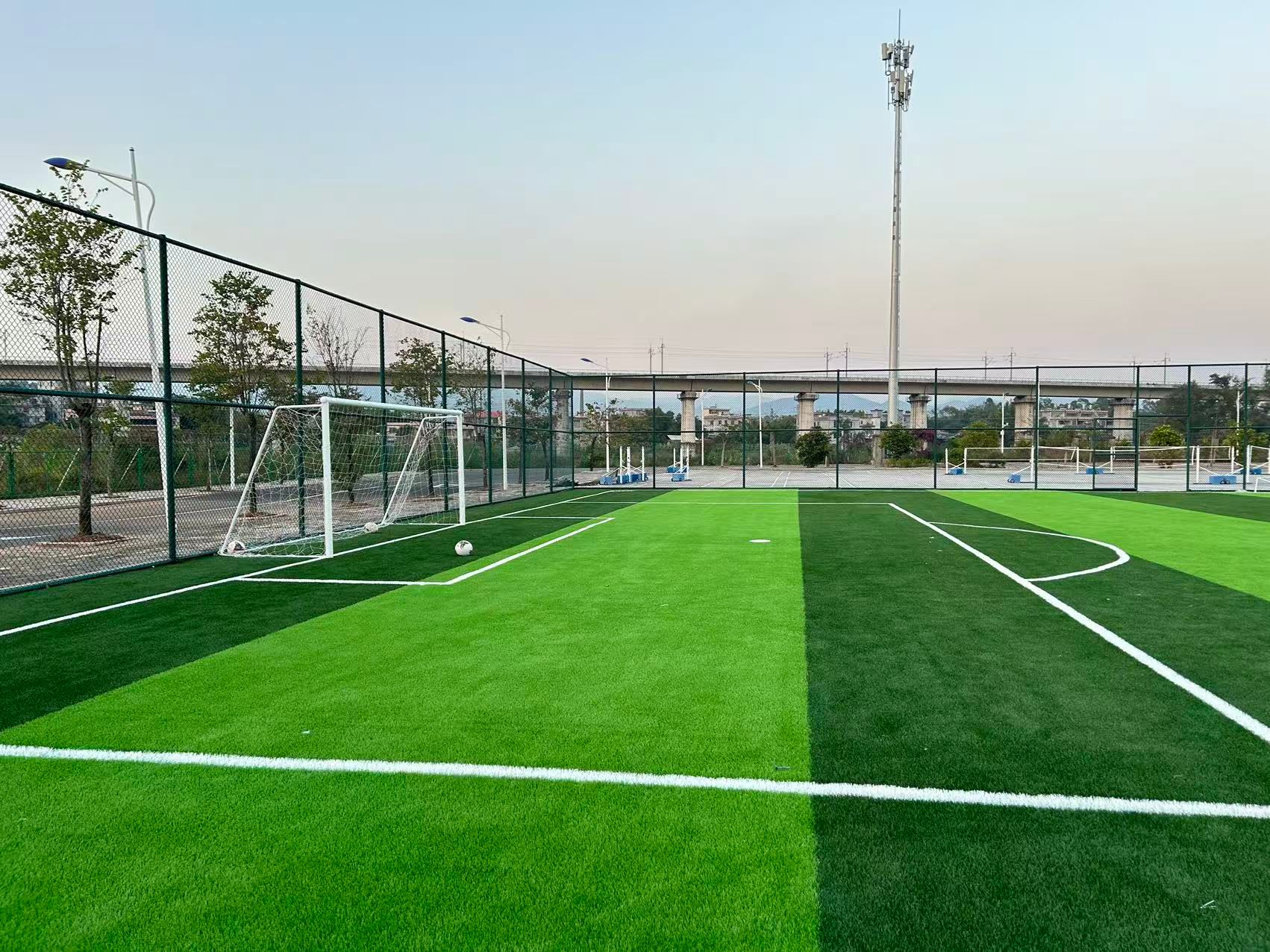 大片绿茵如茵毯般铺展在场地之上,两座白色球门静静伫立在赛场两端,规整的白色标线勾勒出清晰的竞技边界,这片足球场是运动活力与赛场竞技的专属载体。